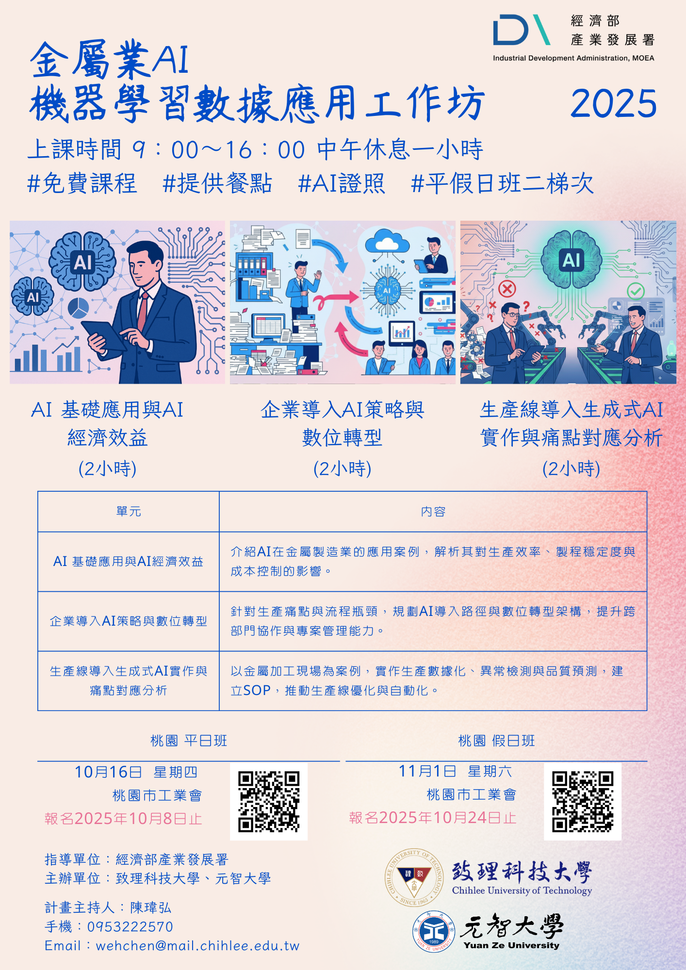 【最新消息】金屬業AI機器學習數據應用工作坊(114.10.03)