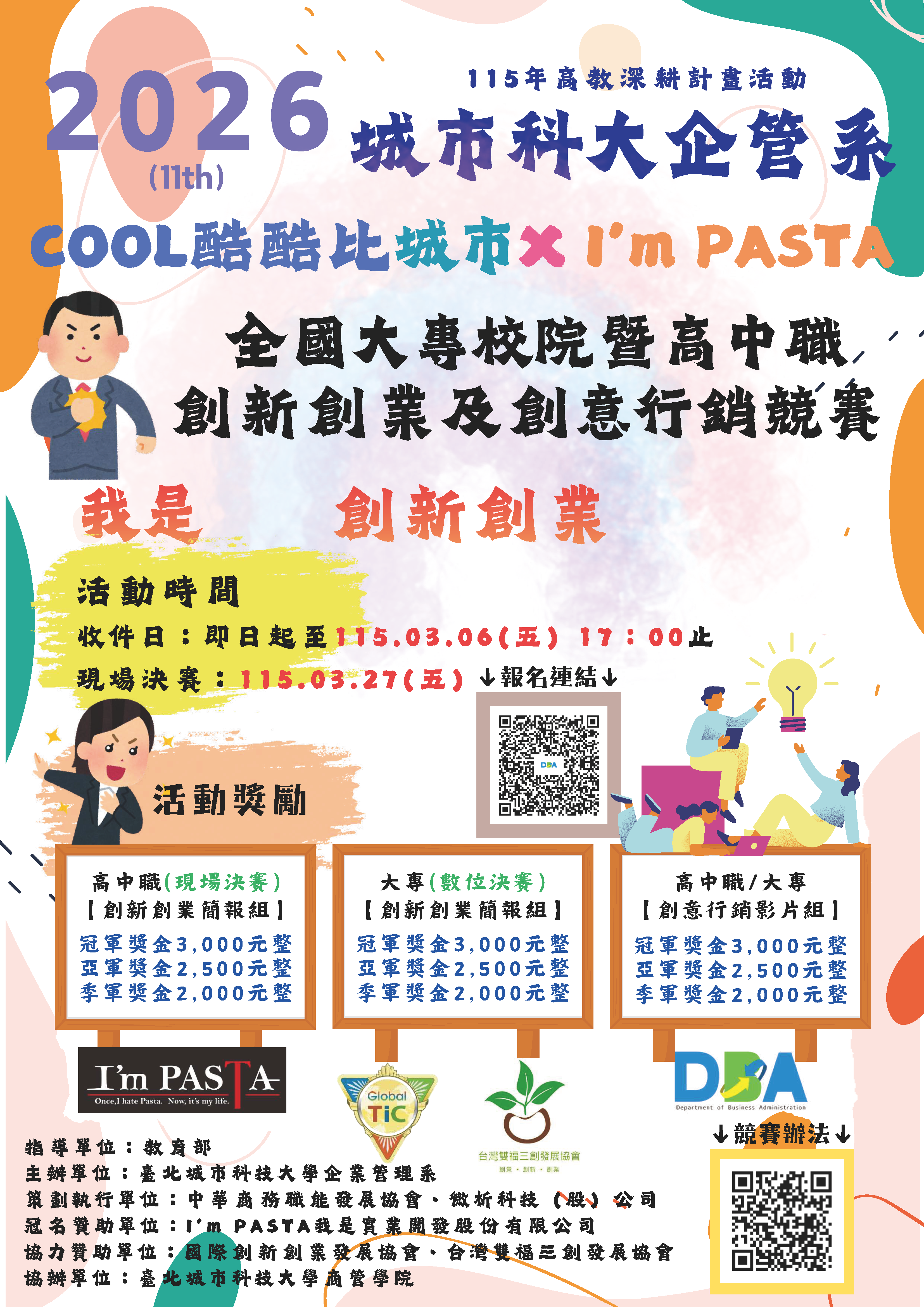 【競賽】2026 COOL酷酷比-我是實業˙城市 全國大專校院暨高中職創新創業及創意行銷競賽活動(114.12.16)