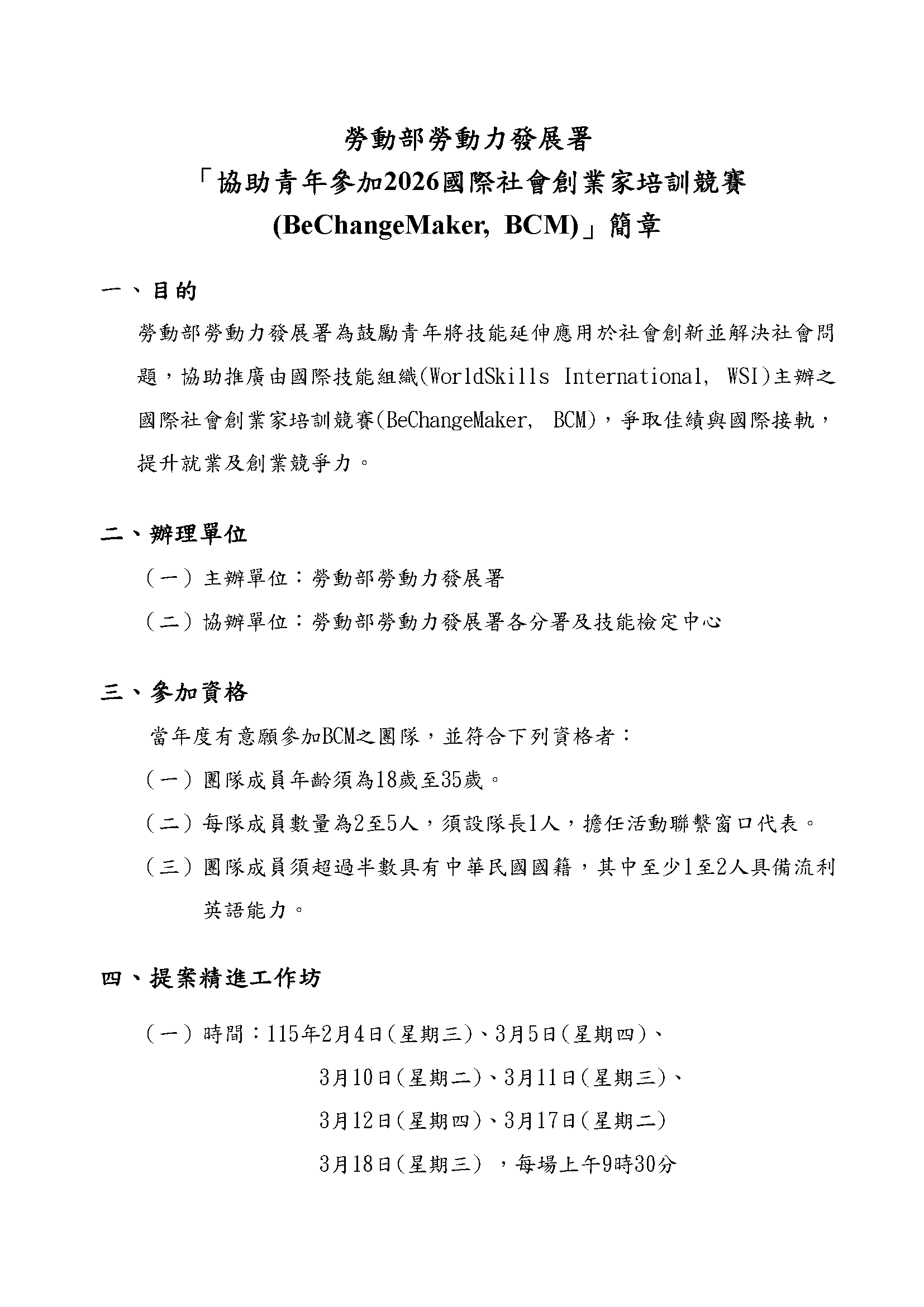 【競賽】協助青年參加2026國際社會創業家培訓競賽(BeChangeMaker, BCM)提案精進工作坊(114.12.30)