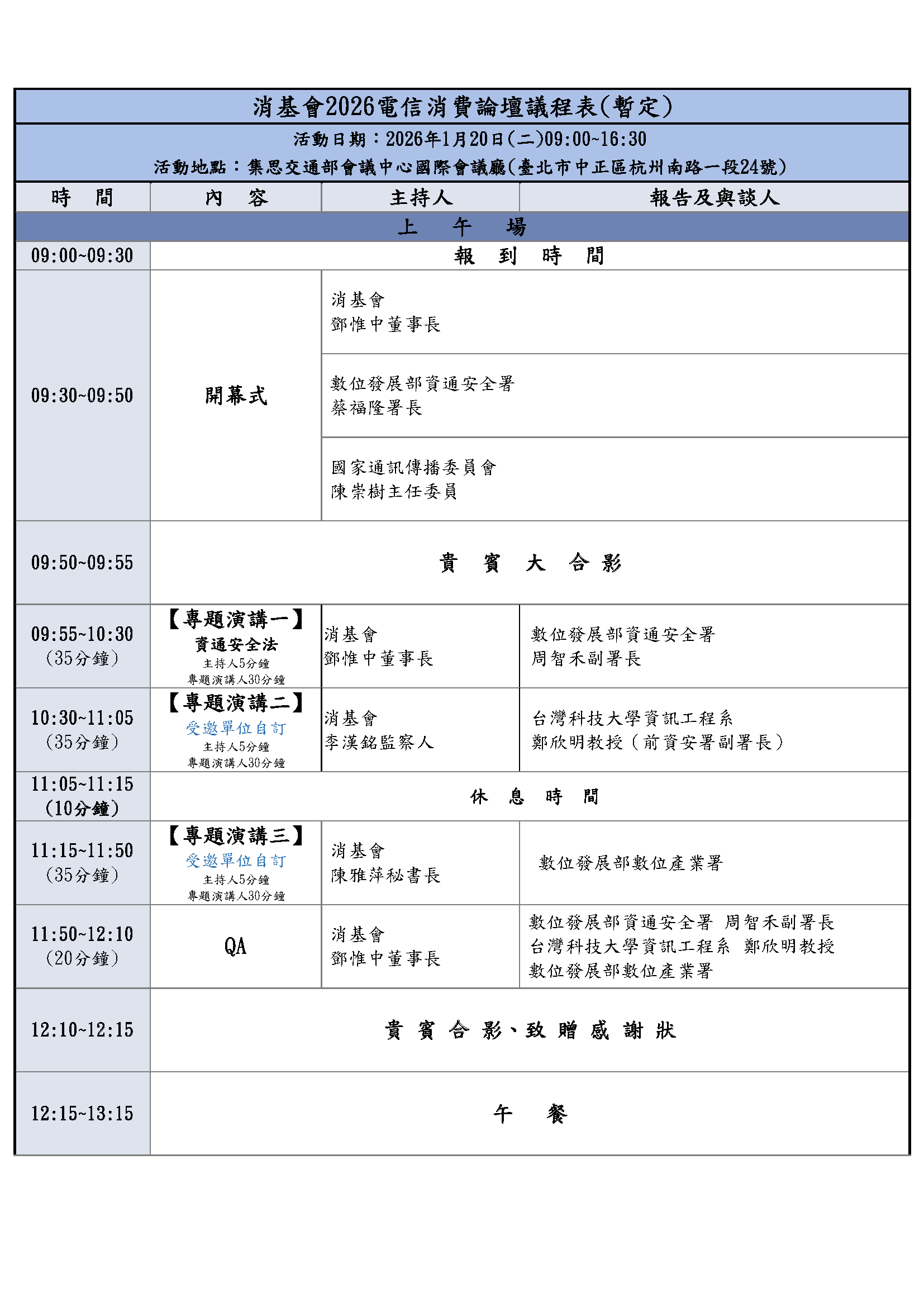 【最新消息】消基會2026電信消費論壇(115.01.15)