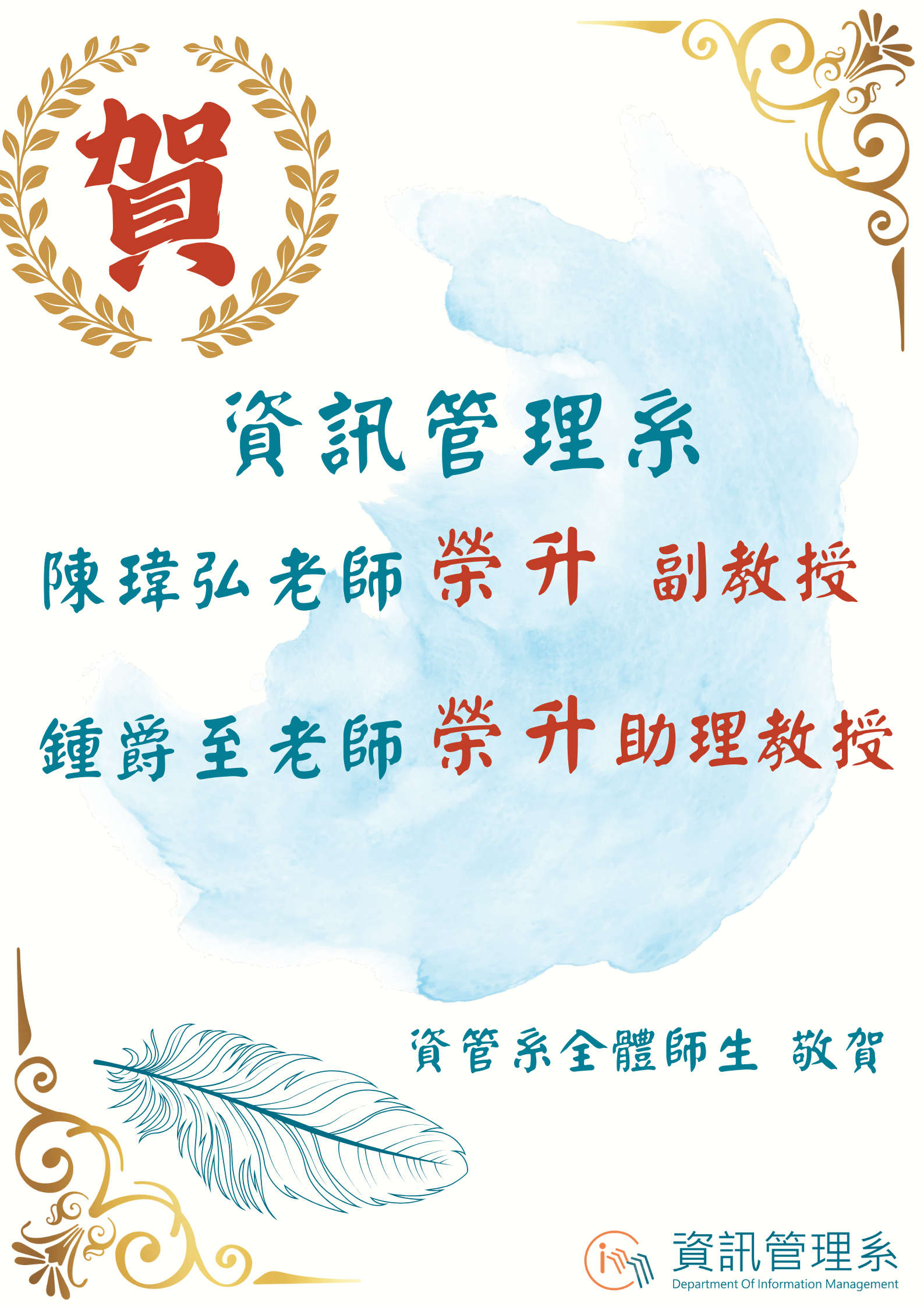 【資管系】賀!本系陳瑋弘老師榮升副教授!鍾爵至老師榮升助理教授!((115.03.19)